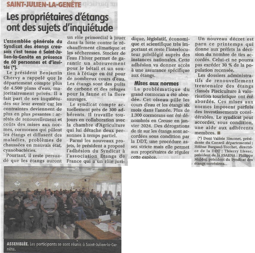 L'assemblée générale 2024 du Syndicat a eu lieu le vendredi 2 mai 2025 à salle des fêtes de St Julien la Genête en présence de nombreux invités et de plus de 50 d'adhérents.